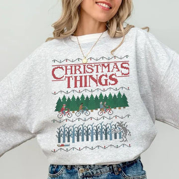 Christmas Things Vintage Movie Cozy Crewneck Sweatshirt, TV Series Retro Shirt, Xmas Gifts