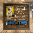 - Losing a pet is never easy. Having a beautiful keepsake to look at every day can help ease that grief a little bit. Customized with your pet's name and a spot for your favorite picture of them. The sign features a space to display their collar.