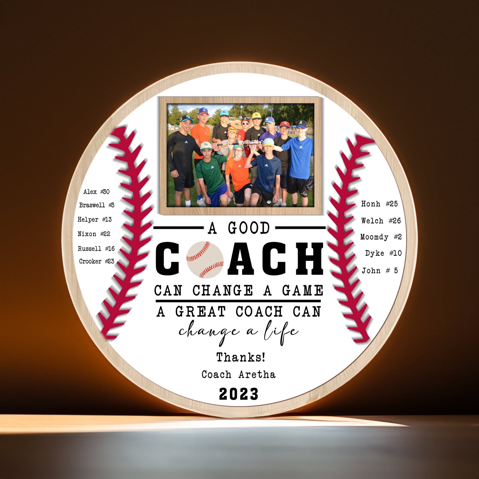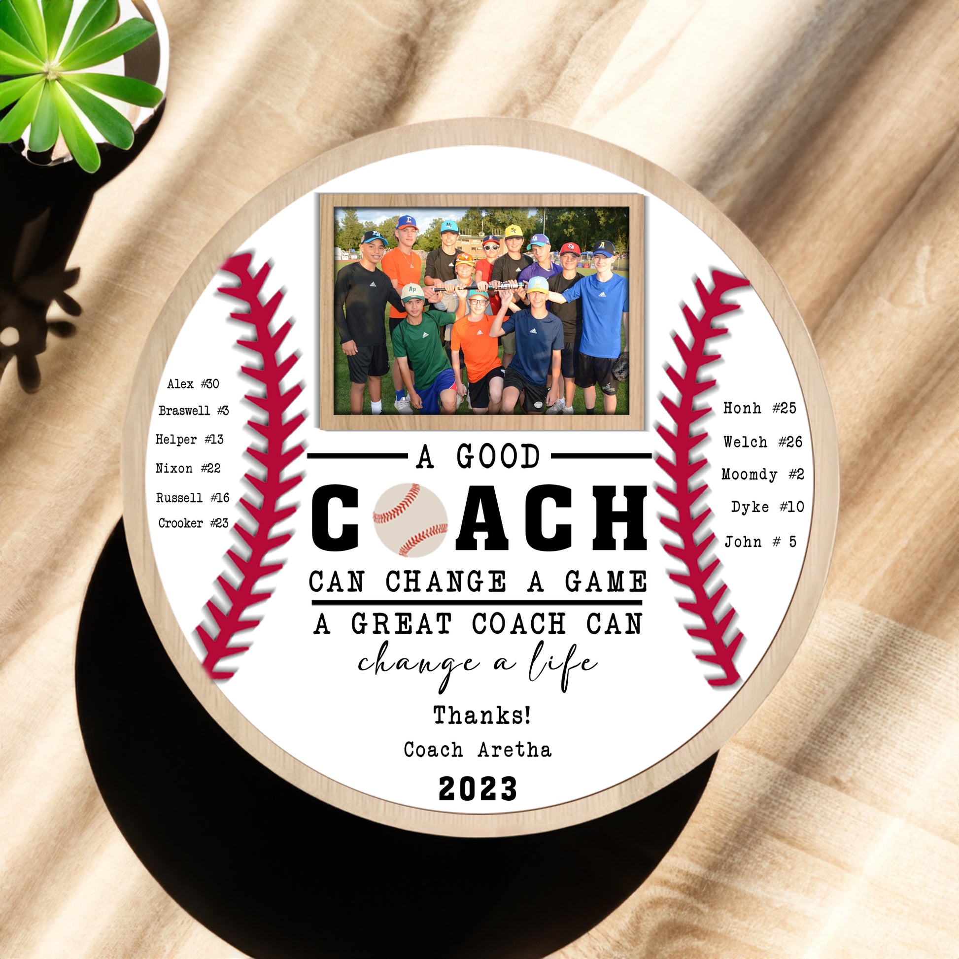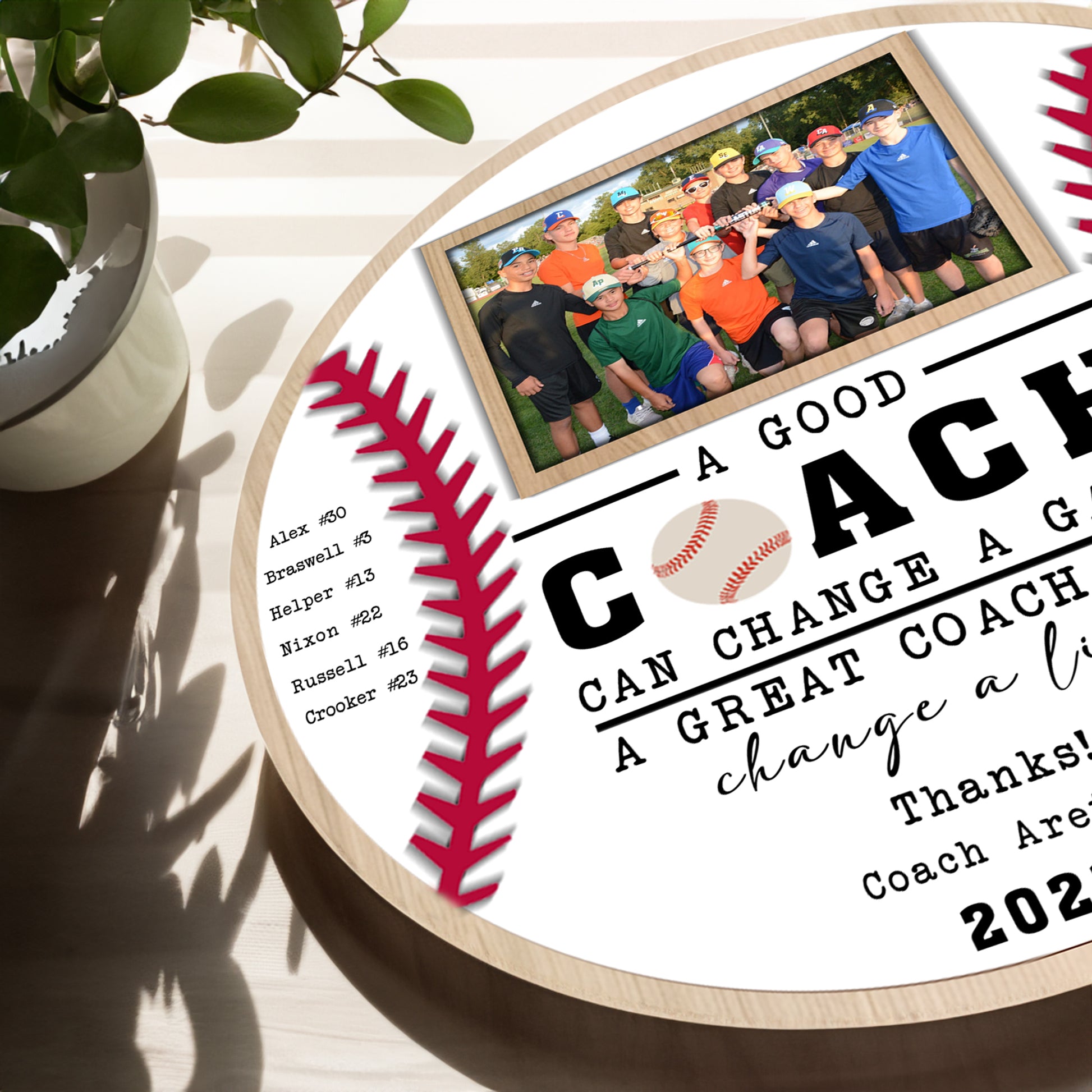 Personalized Baseball Coach Wooden Round Sign, Best Coach Ever Sign, End Of Season Gift For Coach, Team Gift, Team Photo Hanging Plaque, A Great Coach Can Change A Life