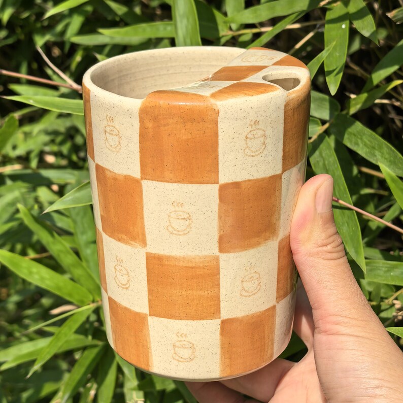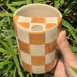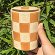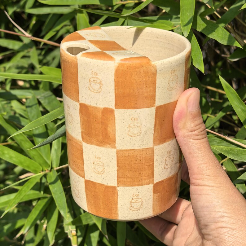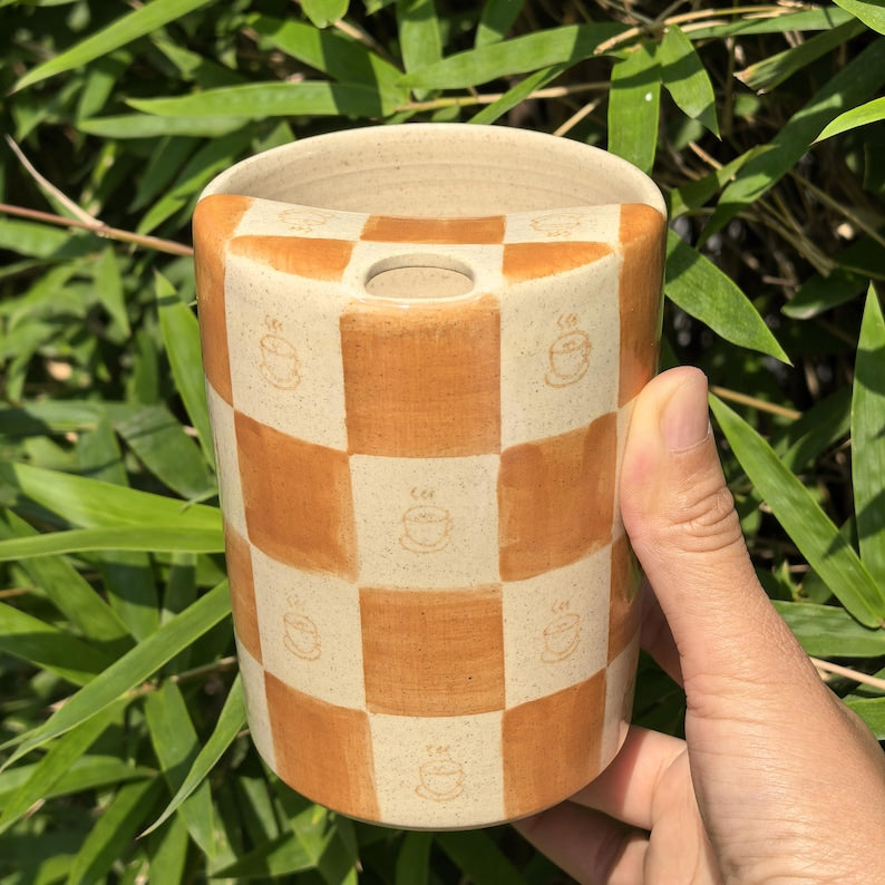 Litzzy - Brown Coffee Checkerboard Ceramic Travel Mug