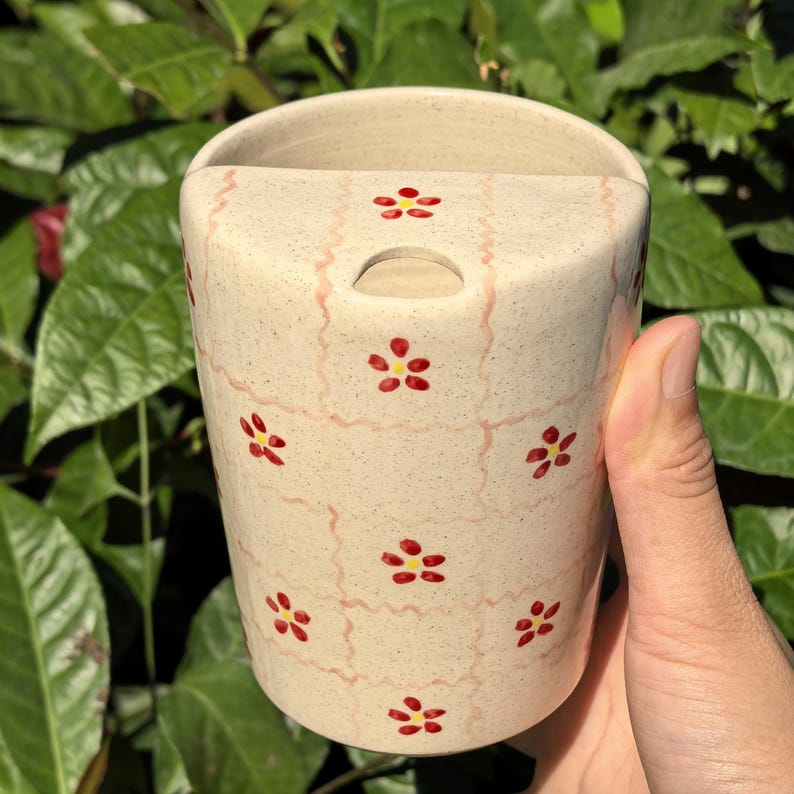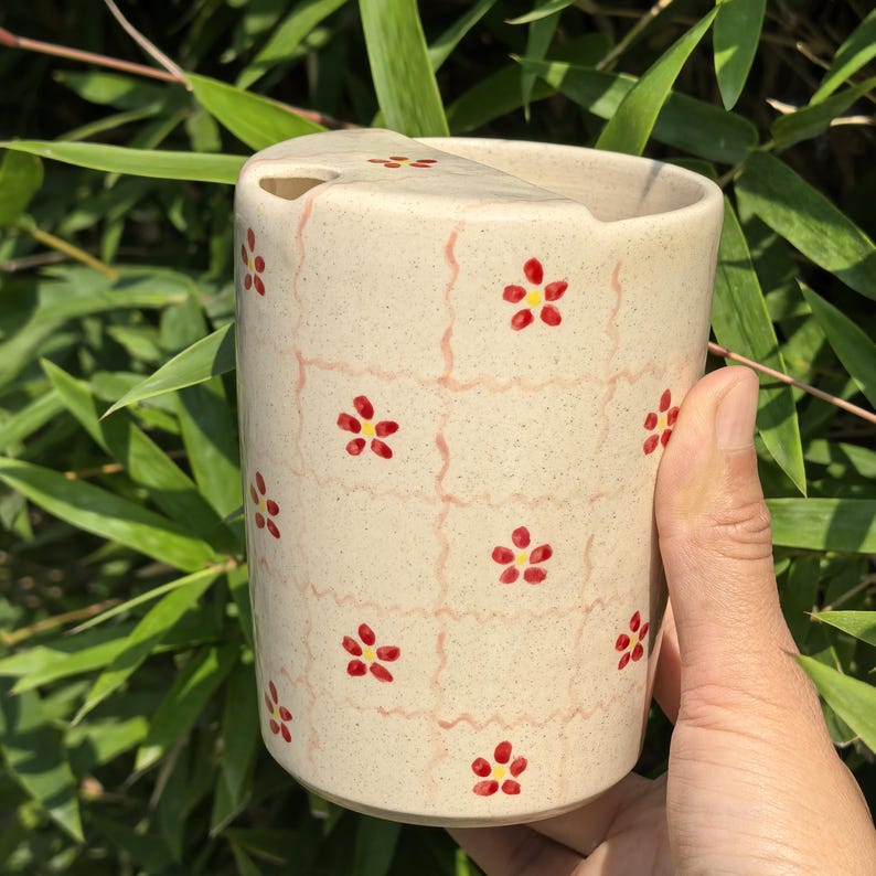 Litzzy - Floral Grid Ceramic Travel Mug