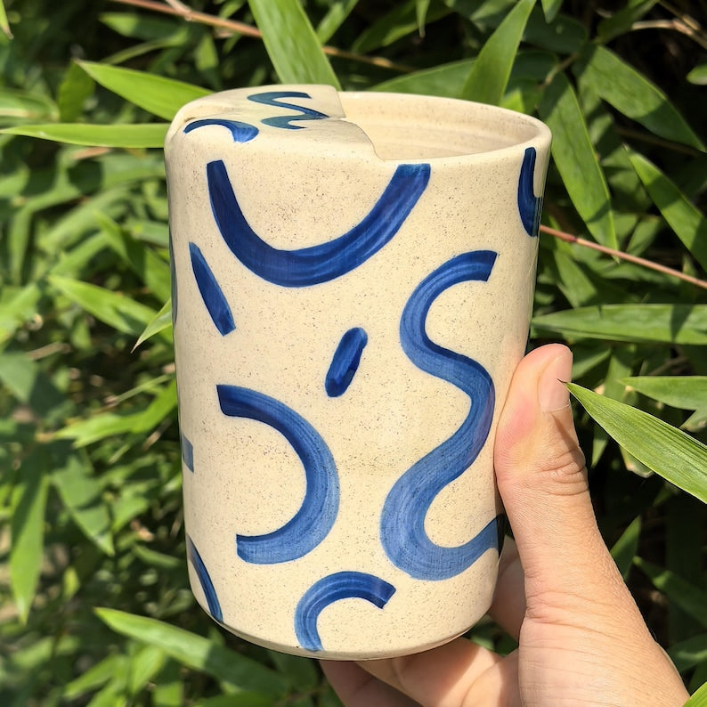 Litzzy - Modern Abstract Striped Ceramic Travel Mug