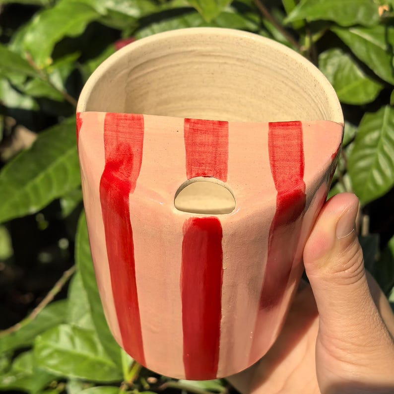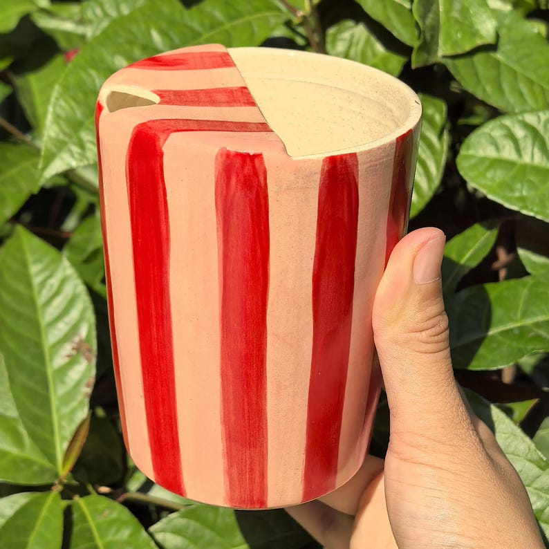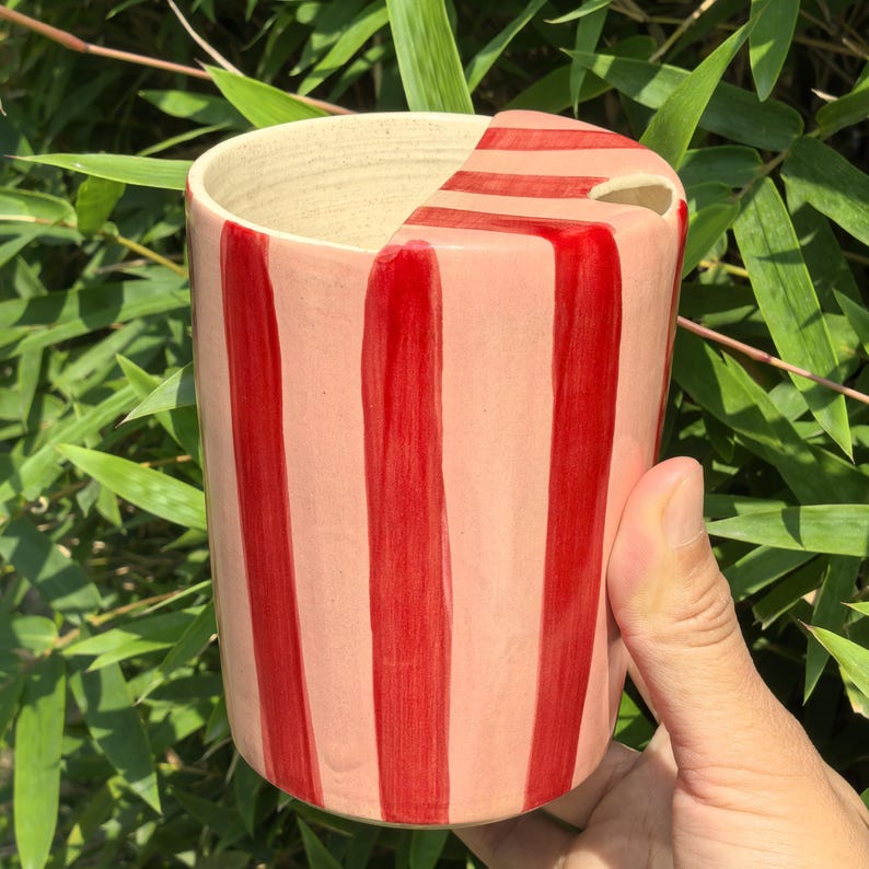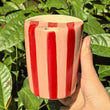 Litzzy - Red Hand-Painted Striped Ceramic Travel Mug