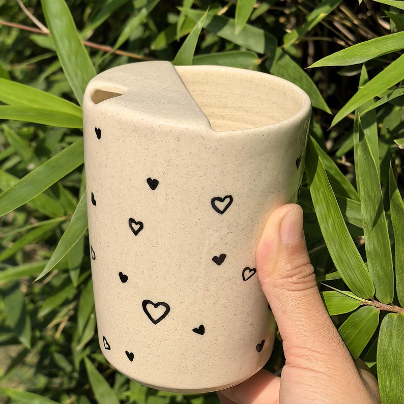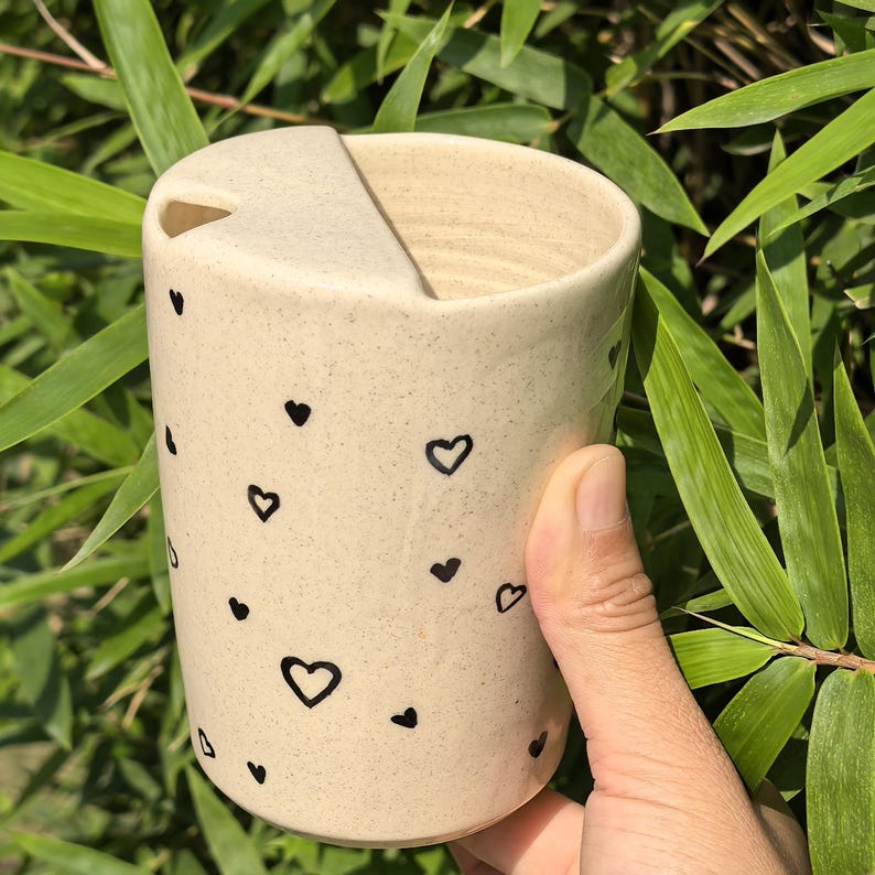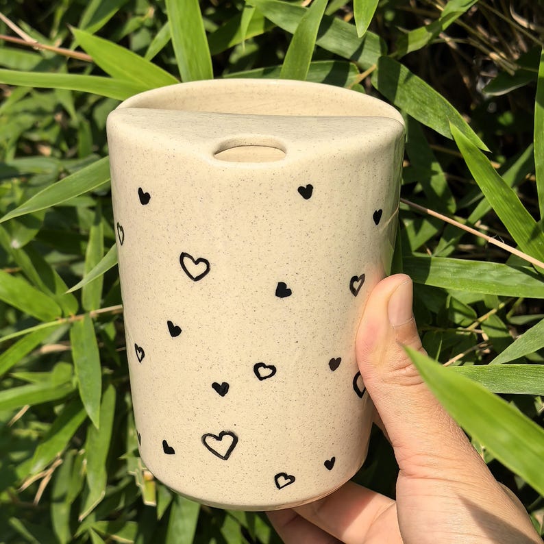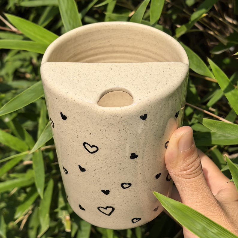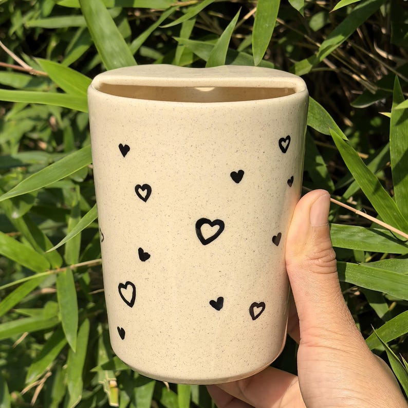 Litzzy - Solid Hollow Heart Ceramic Travel Mug