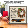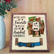 - Losing a pet is never easy. Having a beautiful keepsake to look at every day can help ease that grief a little bit. Customized with your pet's name and a spot for your favorite picture of them. The sign features a space to display their collar.