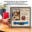 - Losing a pet is never easy. Having a beautiful keepsake to look at every day can help ease that grief a little bit. Customized with your pet's name and a spot for your favorite picture of them. The sign features a space to display their collar.