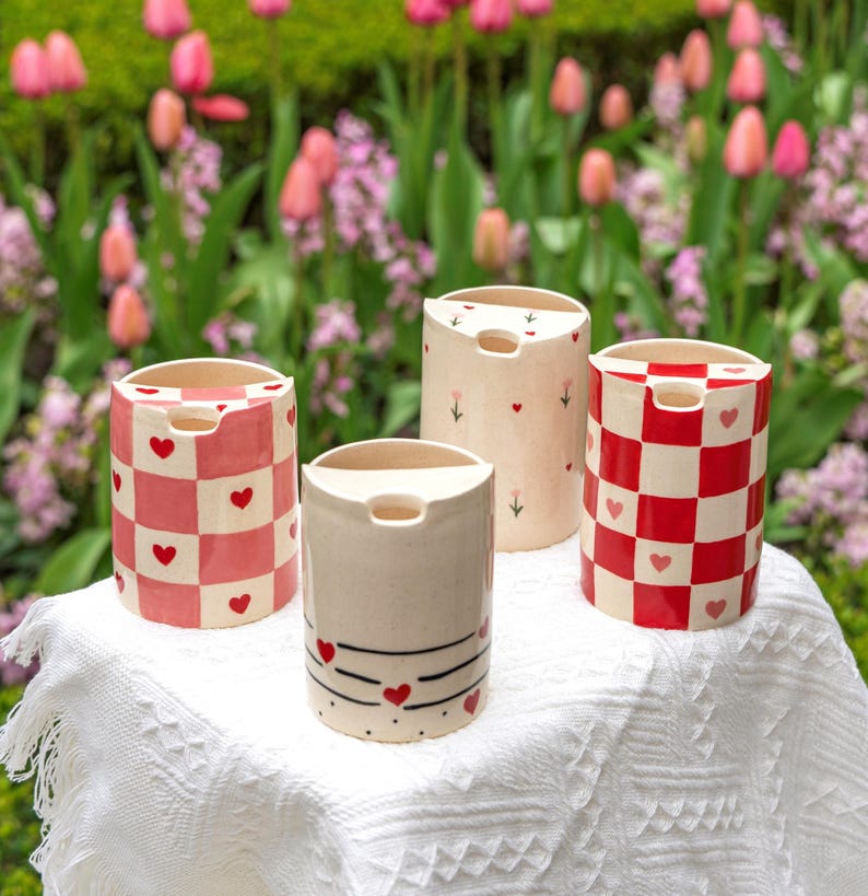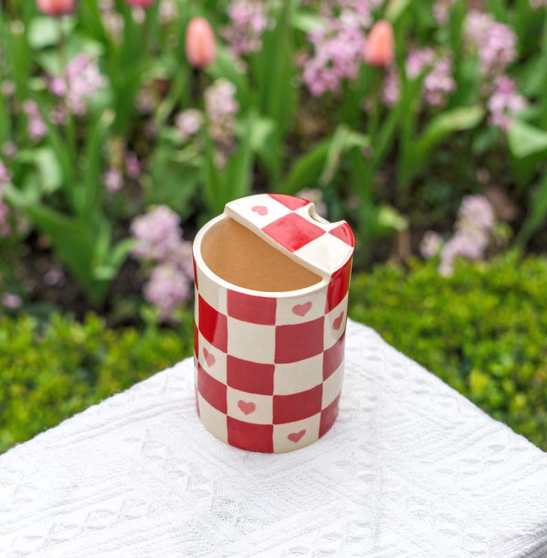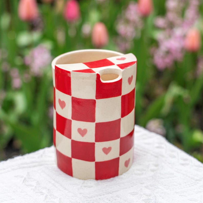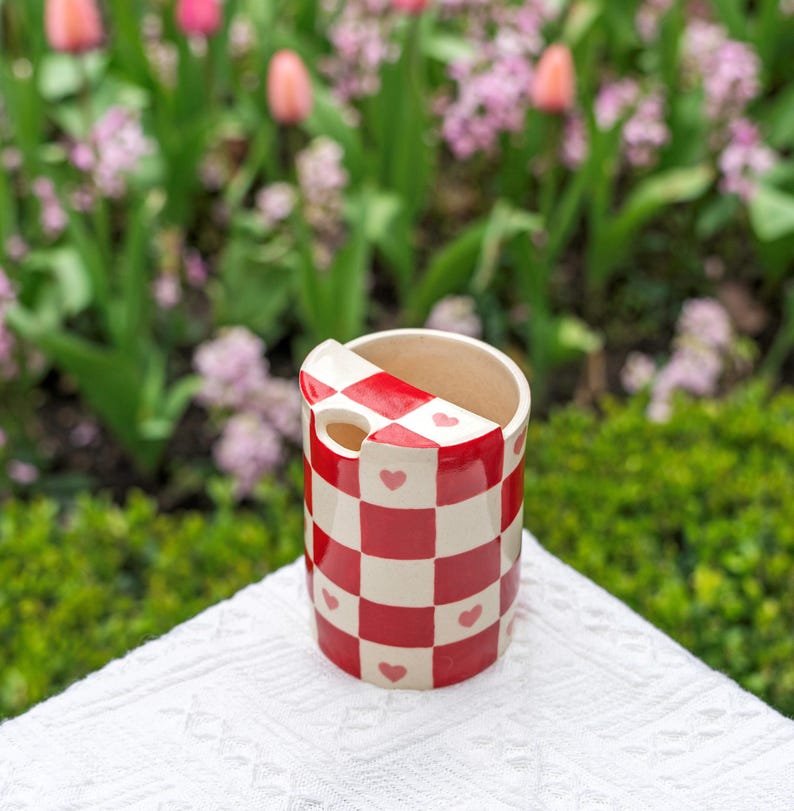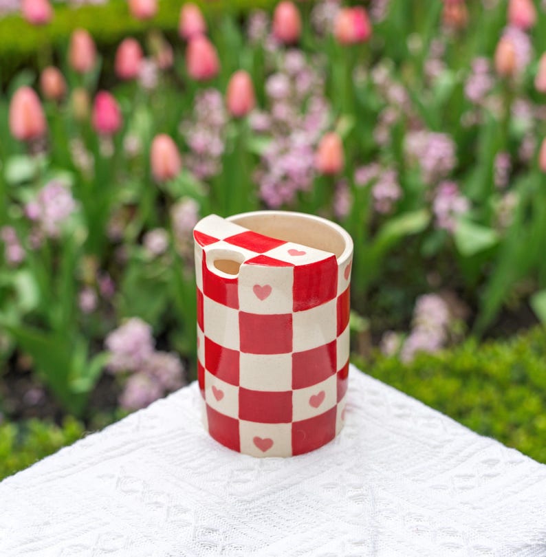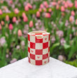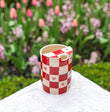 Red Checkerboard Hand-Painted Pottery Coffee Cup