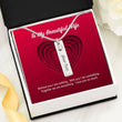 The message card insert features a gorgeous red background with a recessed heart illusion that perfectly frames the pendant. The script reads "To My Beautiful Wife - Without you I am nothing. With you I am something. Together we are everything. I love you so much."