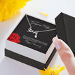 The message card insert has a stunning black background with a single red rose in the lower left corner. The black background makes a fantastic contrast with the pendant. The card reads "To My Gorgeous Wife - I may never find words beautiful enough to describe all that you mean to me, but I will spend the rest of my life searching for them. I Love You. Happy Anniversary."