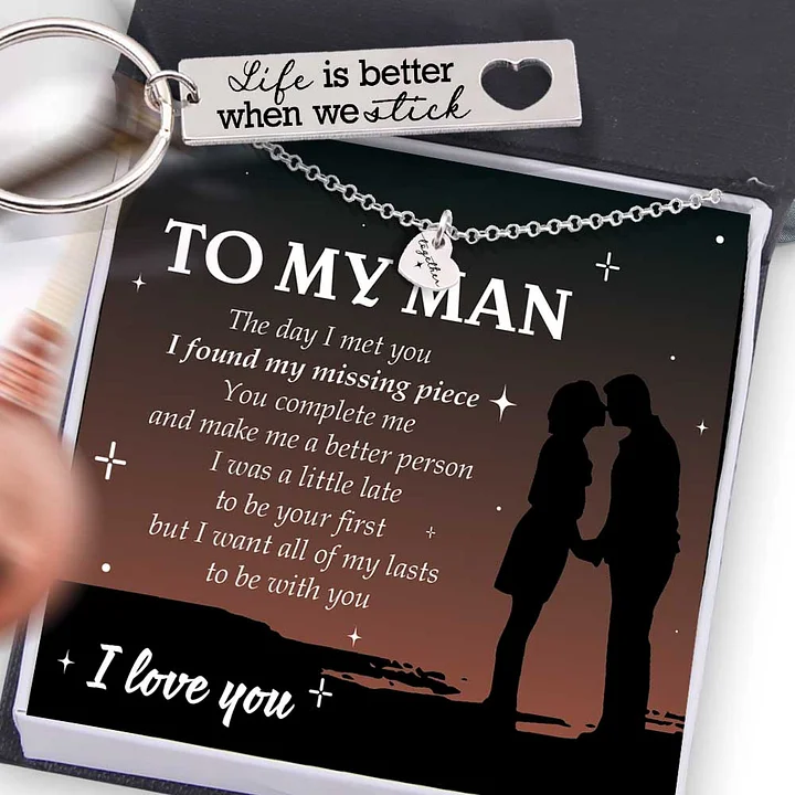 To My Man Heart Necklace and Keychain Gift Set for Him "Life Is Better When We Stick" - To My Boyfriend , Gift For Boyfriend